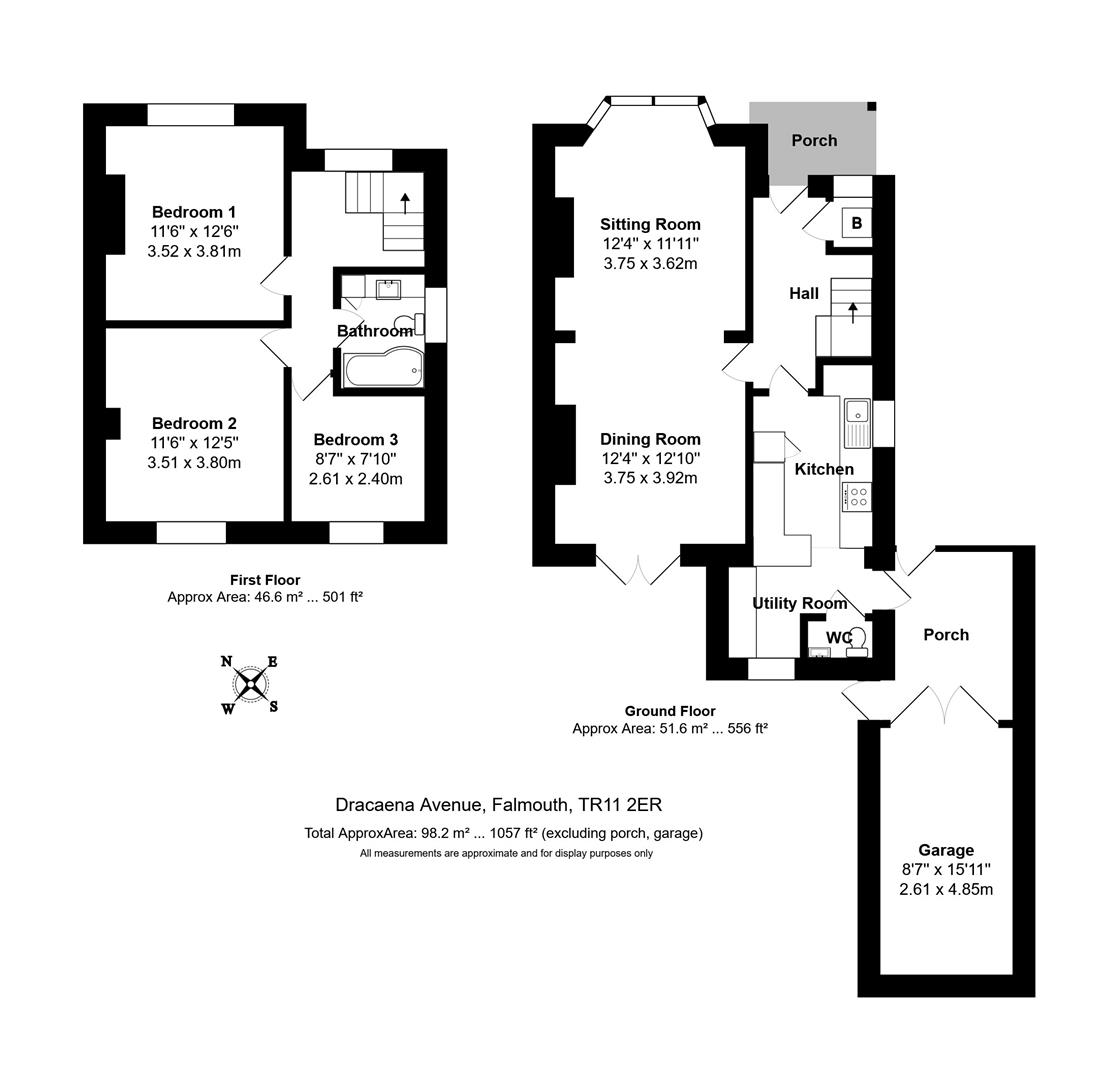 Spanning the full depth of the property, bright and light, with a broad bay window to the front elevation offering an elevated view over lower Dracaena and rolling fields of Flushing in the distance. Glazed entrance door with matching glazed side panel providing access onto the enclosed and sheltered rear courtyard.