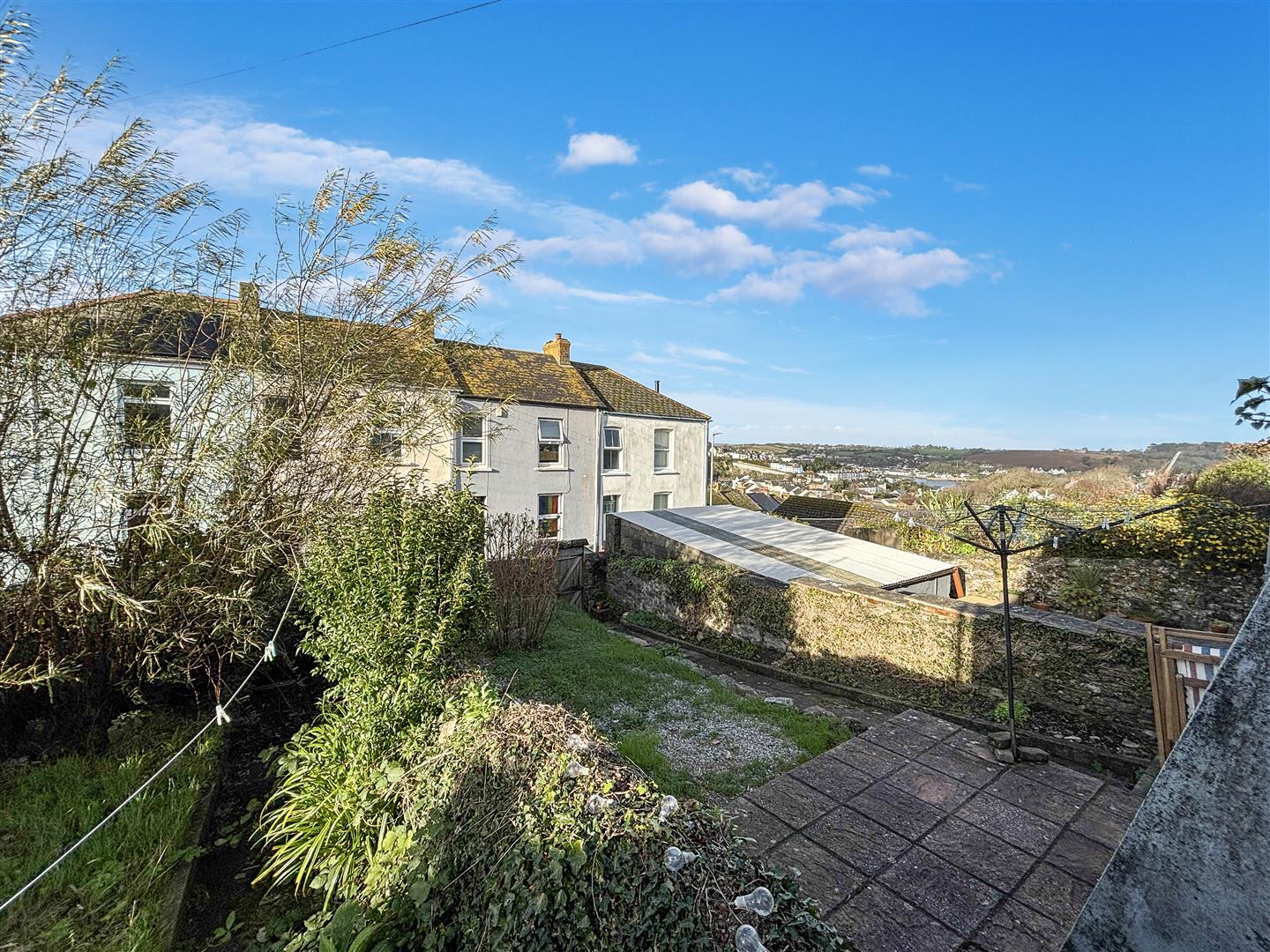 A raised hardstanding accessed immediately from the rear of the kitchen, providing a useful level area for storage etc, with wrought iron gate to descending granite steps and garden pathway, and an area of lawn which is right for landscaping, yet providing an elevated and sunny area in which to enjoy afternoon sun. Views taken in over the Penryn River and lower Falmouth town rooftops.