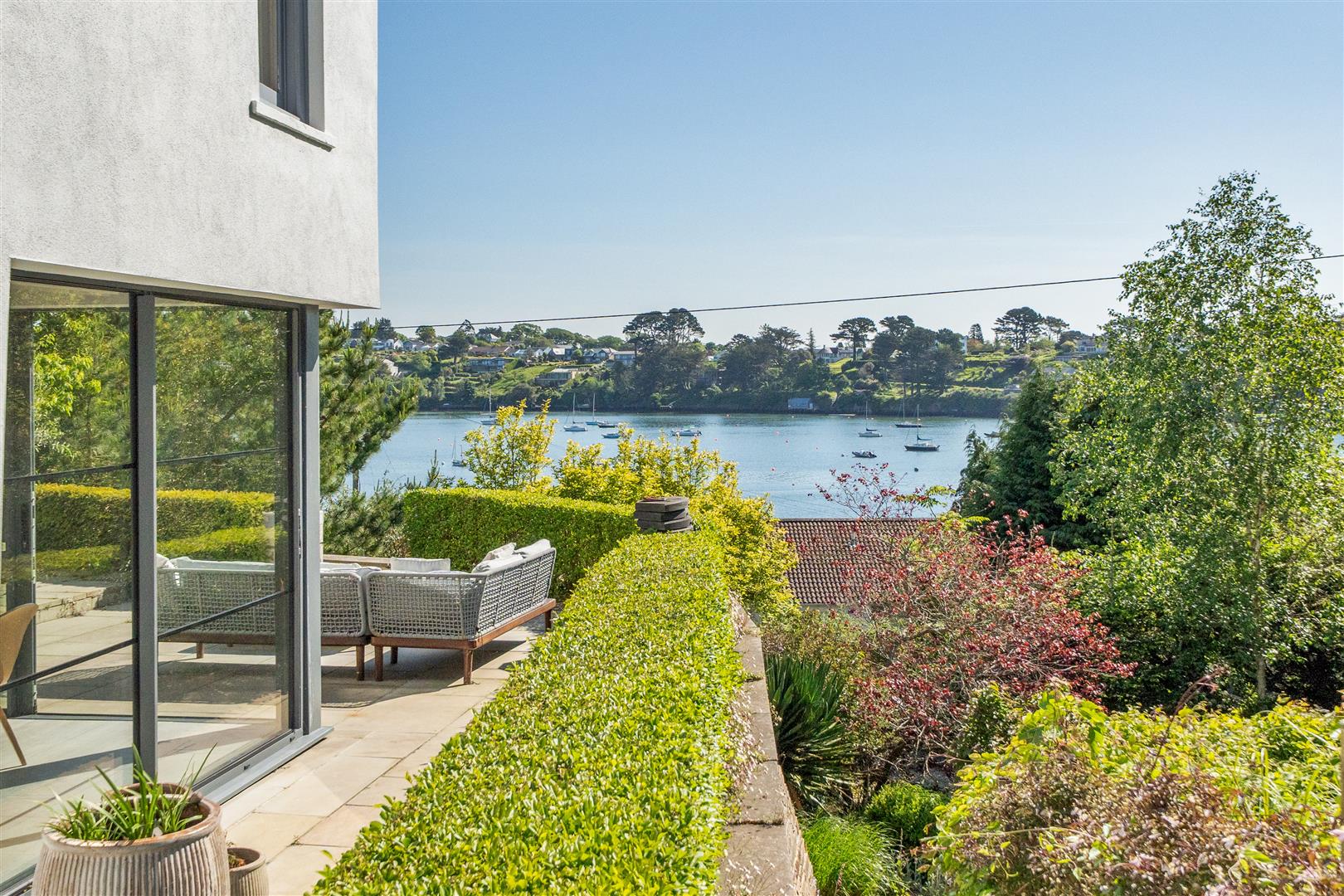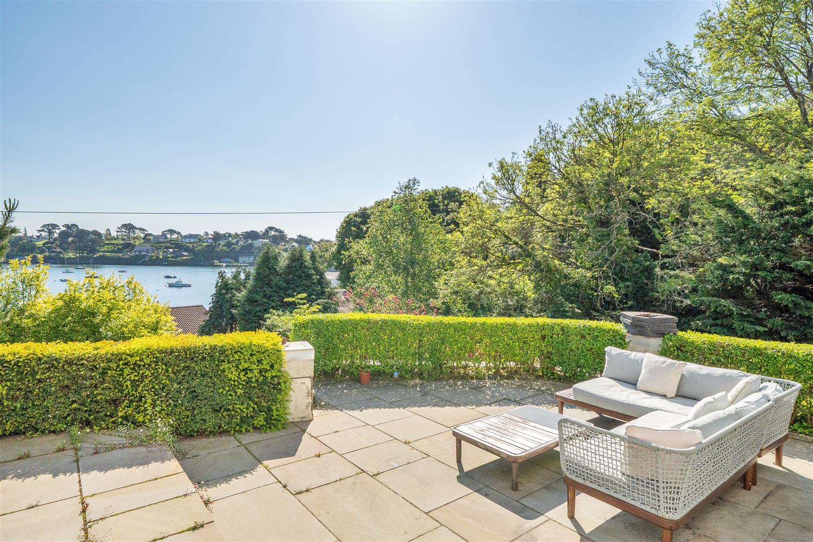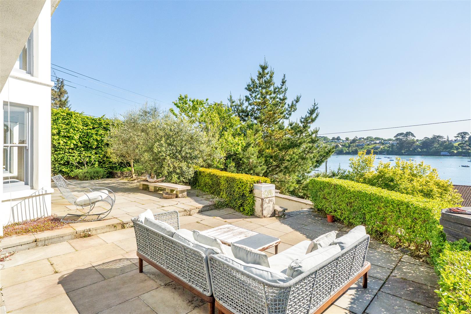 Approached via double gates which give access to the gravelled driveway, shared with one other property and leading to a private parking area with space for three/four cars. Steps lead up through the terraced gardens, beautifully planted herbaceous borders contain a vast number of colourful shrubs and small trees. The elevated gardens face south east, affording outstanding water views over the creek. The large top terrace is a wonderful space for entertaining, accessed via the kitchen/dining room and main reception room; the terrace is beautifully positioned, to maximise the creek views and make the most of the sunny aspect.