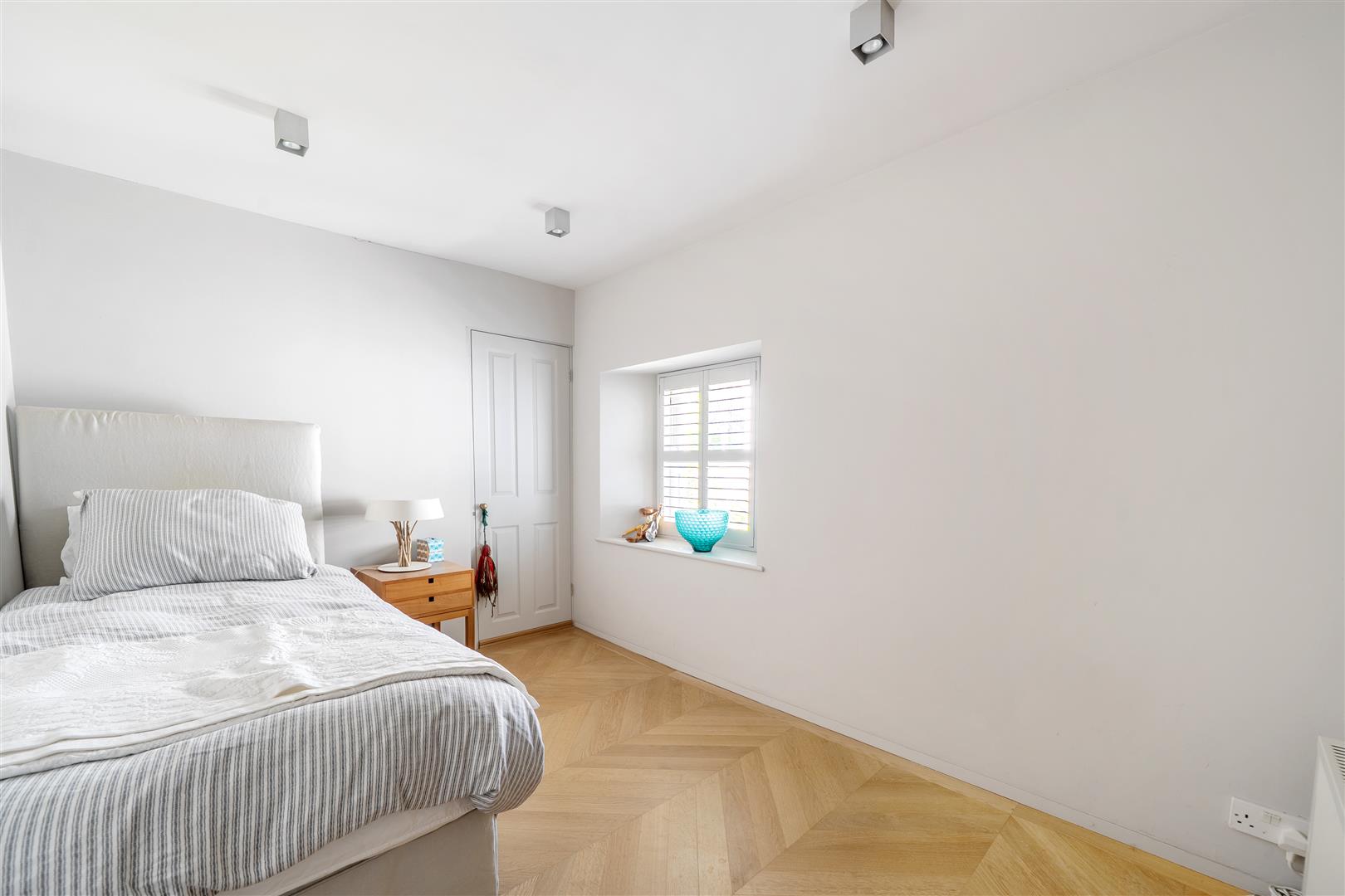 A perfect third double or twin bedroom. Triple aspect, with wide floorboards and double doors to the rear.