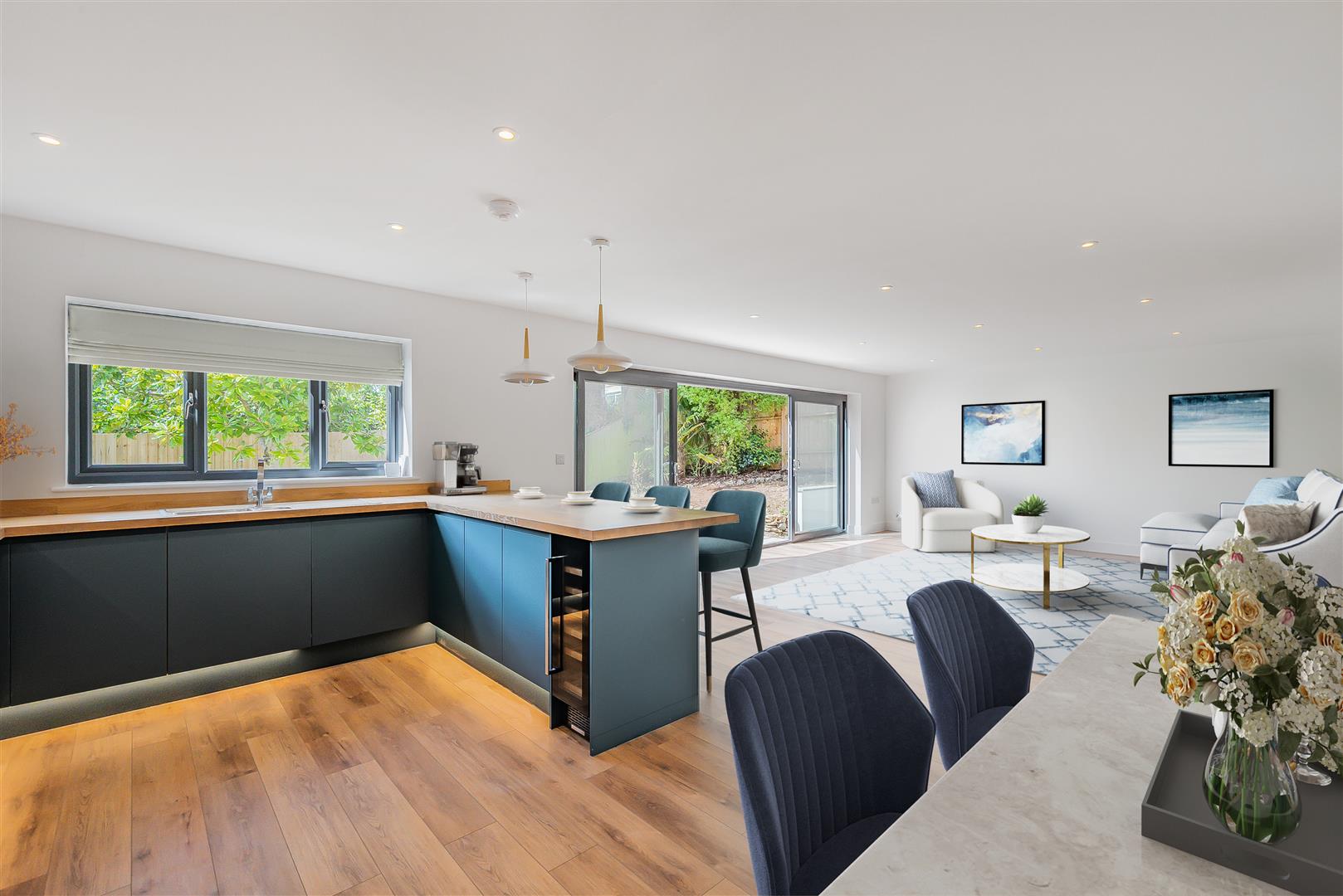 A wonderful space spanning the entire width of the property, a room in which much time can be spent entertaining friends or guests, or enjoying family gatherings. Without doubt, a superb social environment with broad clear glazed sliding doors to the rear, giving immediate access onto the rear patio and enclosed garden beyond.